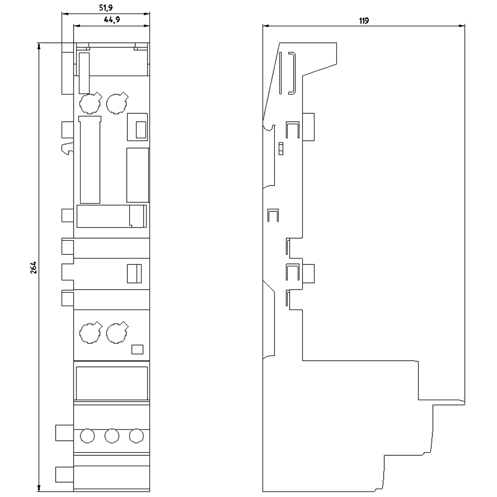 Mô-đun đầu cuối cho ET 200S DS cho bộ khởi động DOL không có kết nối đường dây cung cấp cho cấu hình cá nhân hóa.