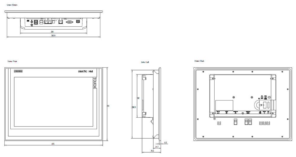 | Degree of protection (IP), front side | IP65 |